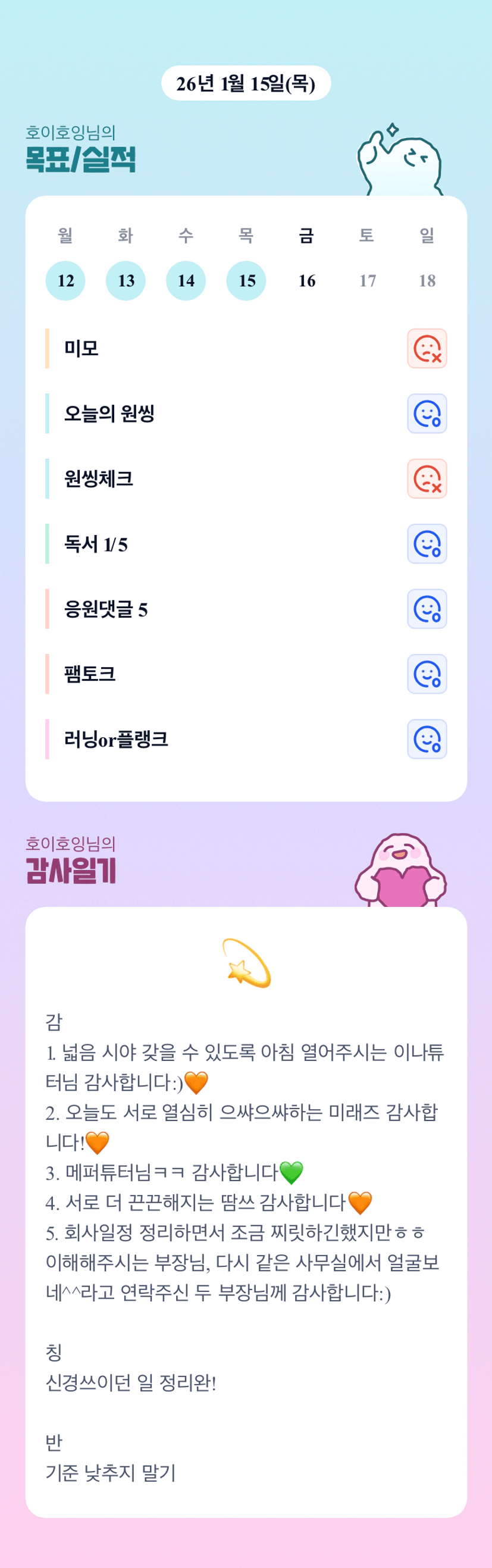 호부님 화이팅입니다~~!! 매번 세심하게 반원분들 챙겨주셔서 감사해요