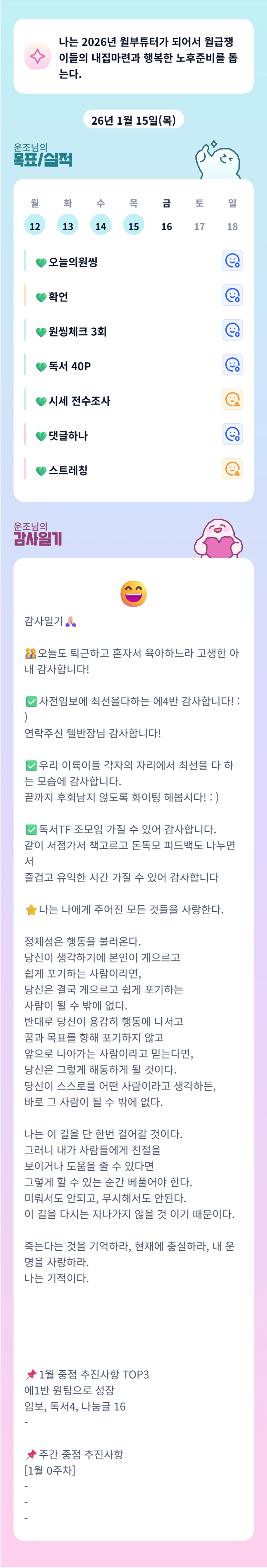 [에이스4반/도서TF 26.1Q 운조] 1/15 목실감