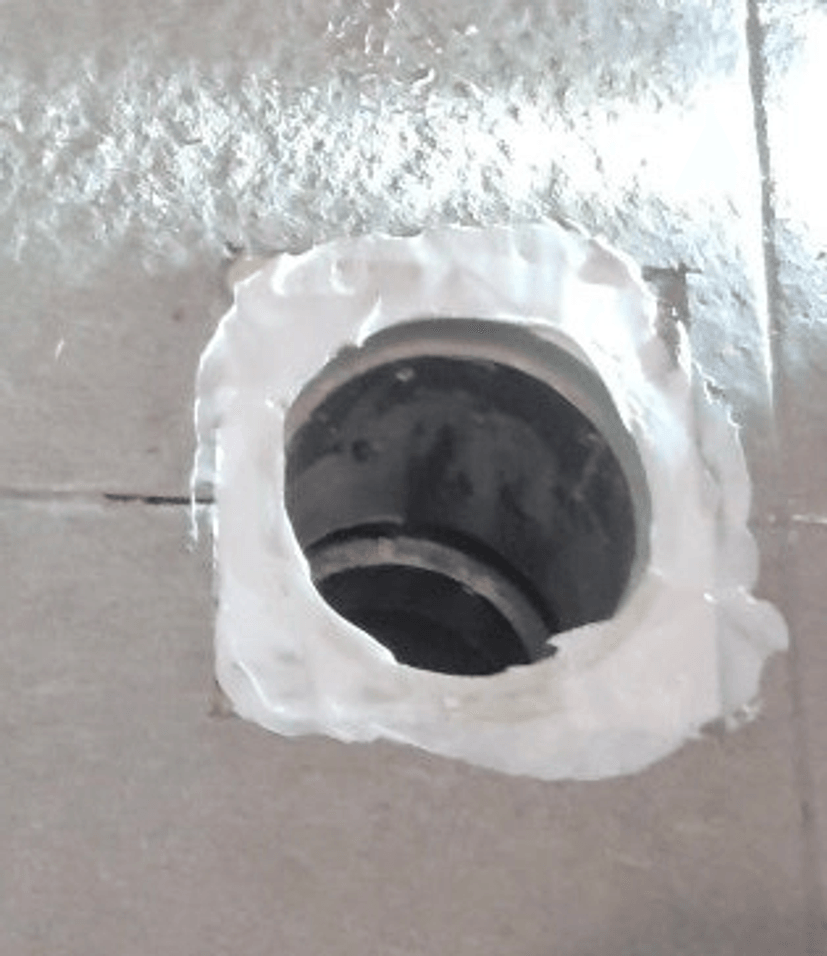맞지 않는 정심을 배관에 끼우는 과정에서