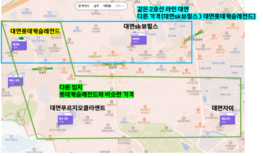 • 같은 입지인데 가격 차이가 나는 단지