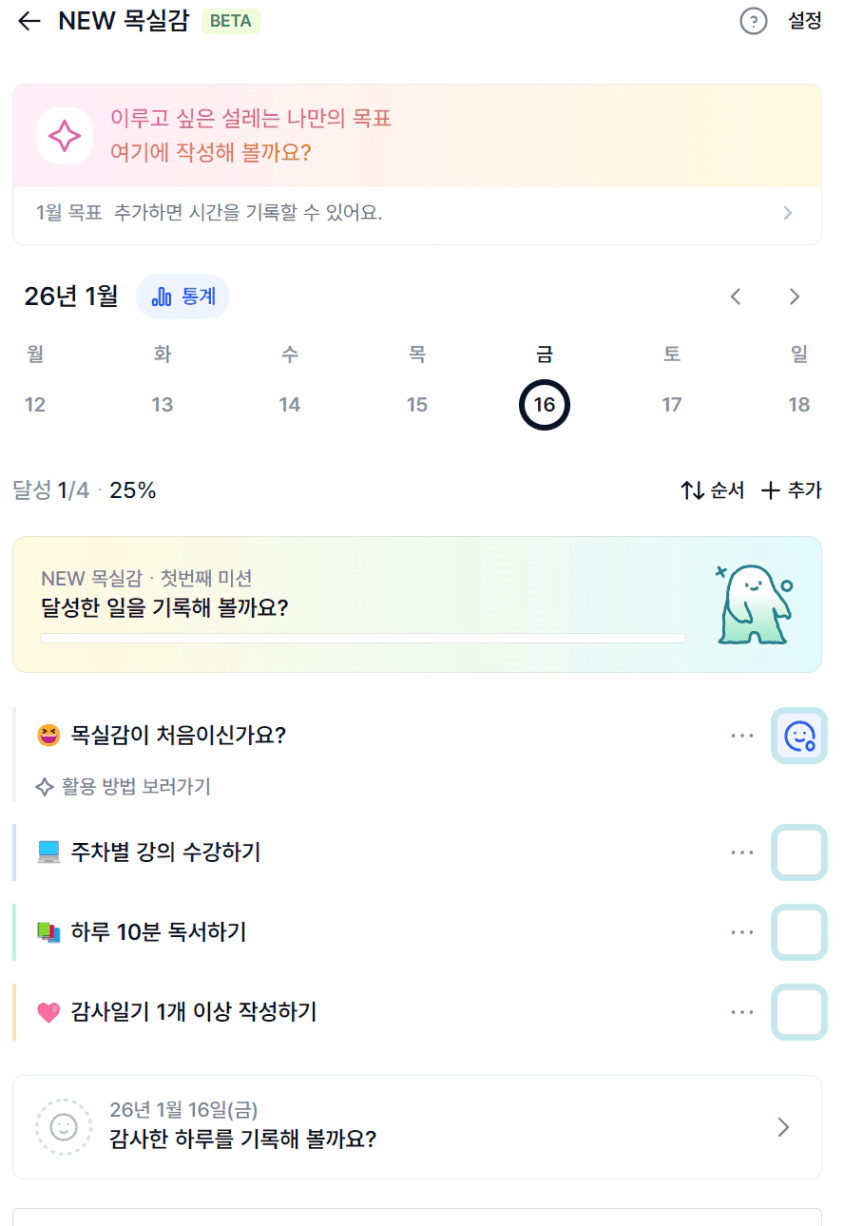2️⃣ 1주차 목실감 작성하며 어땠는지 소감도 써보기 ✍🏻