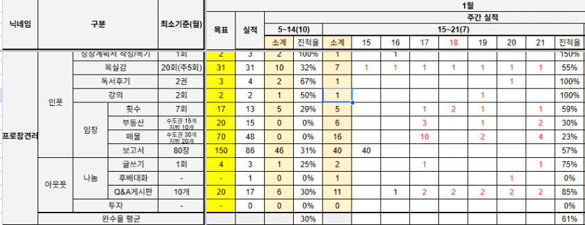 이번주부터 매임주간인데 가족이슈로 풀매임이 불가해서 달성에 부담이 생겼습니다
