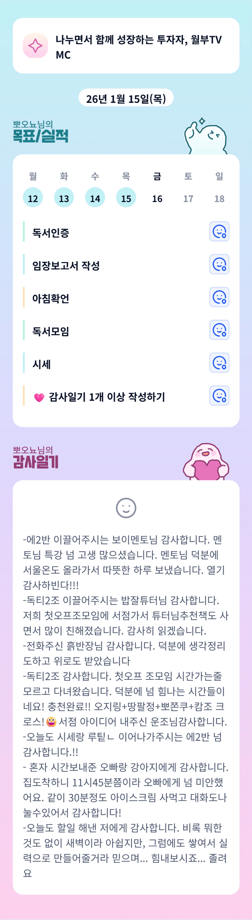 매일 목실감 작성, 일정과 목표 매일 리마인드 필요