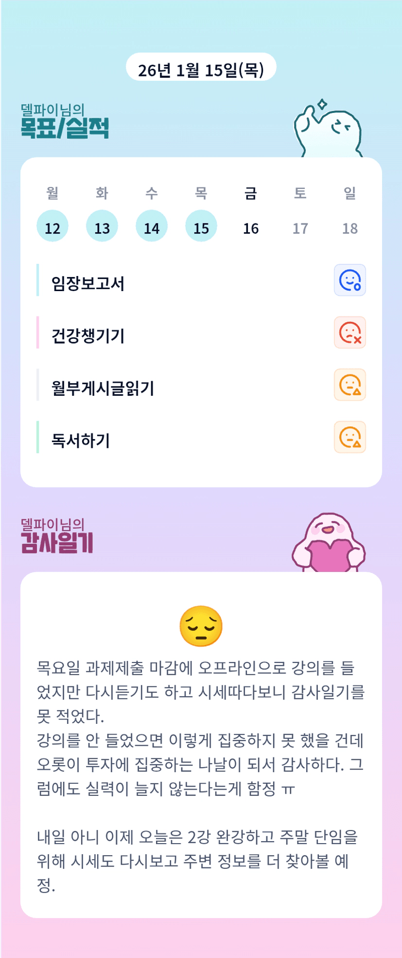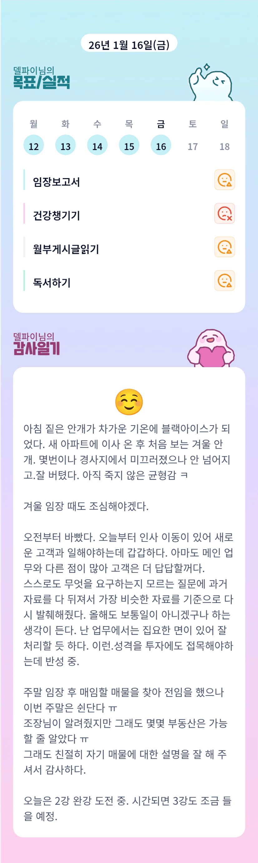 델파이님 이사하셨나봐요. 정말 바쁘셨을 듯합니다. 고생많으십니다. 이번 한주도 고생 많으셨어요^^