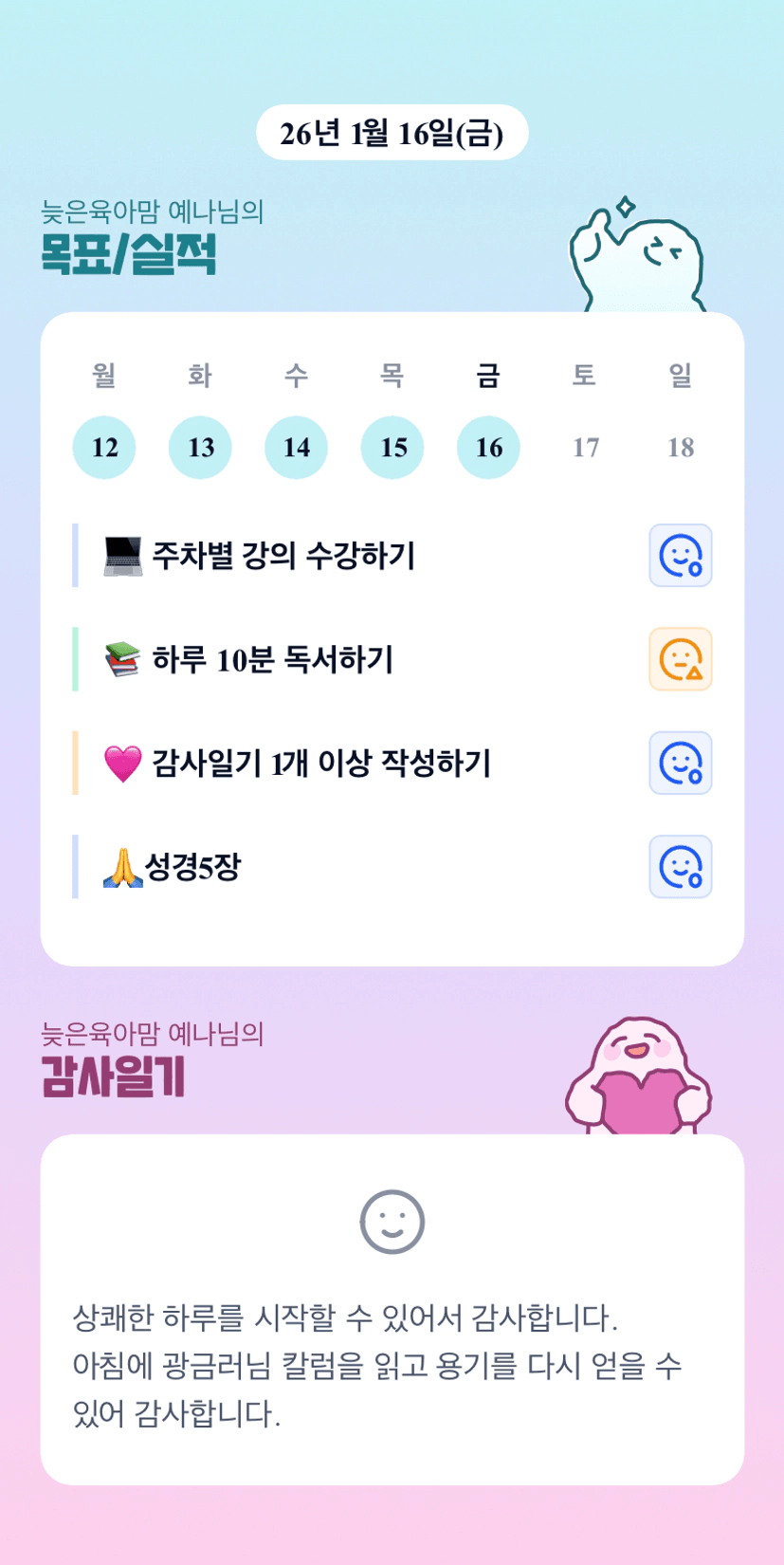 습관을 들이는 과정이 되는 것 같아 좋습니다!