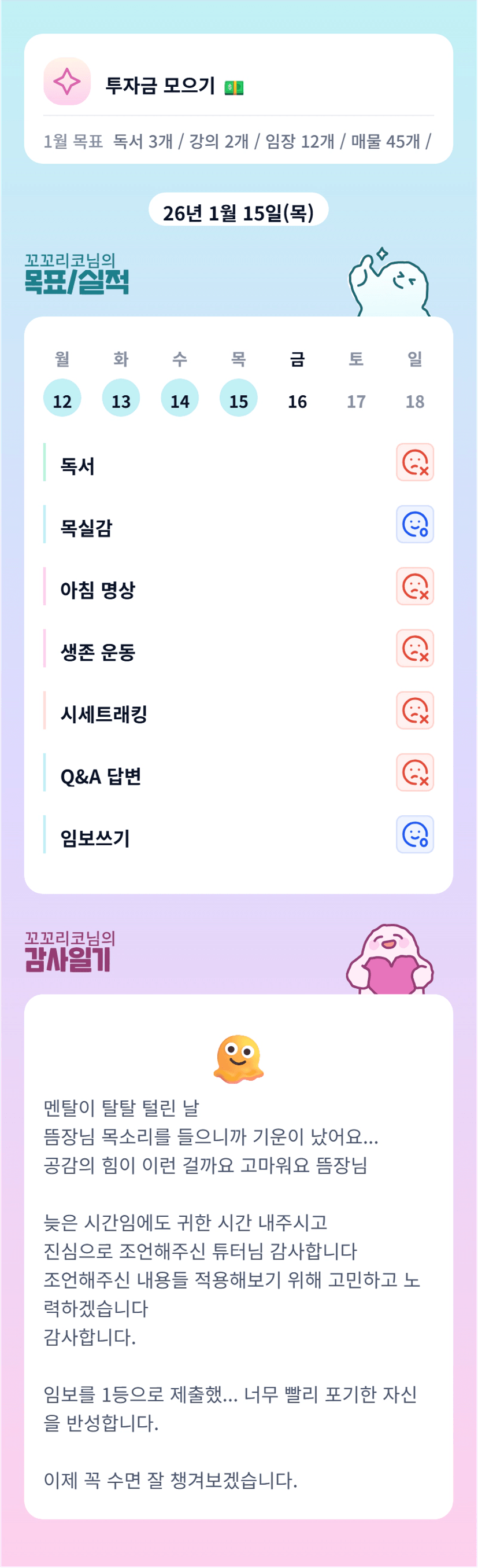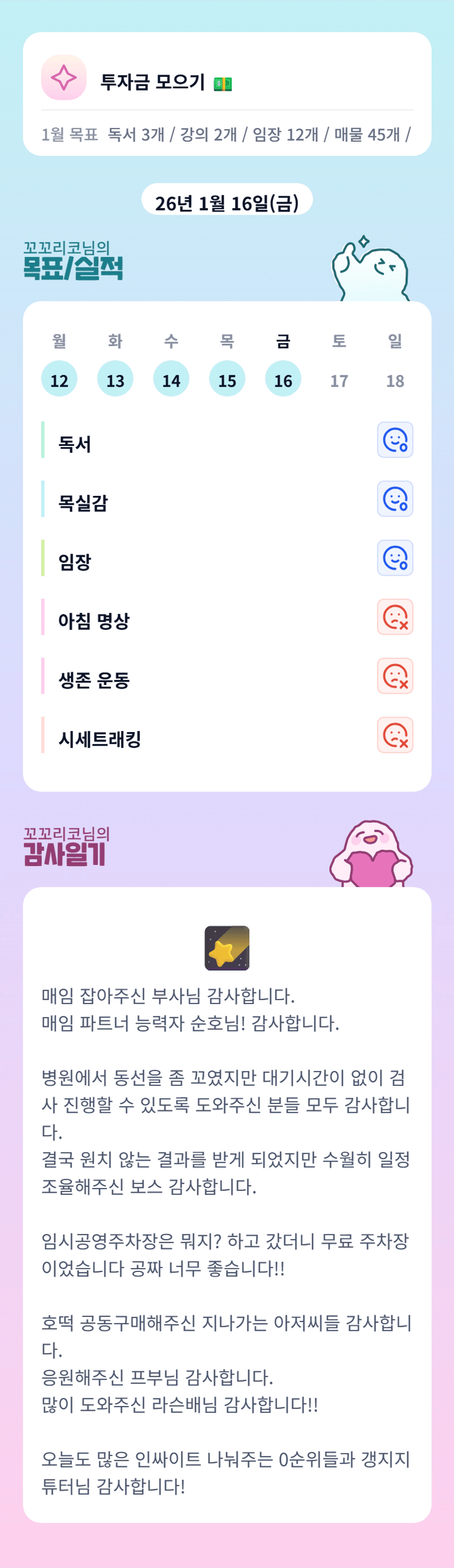 엇. 선배님 어디 아프셨어요? 건강 챙기시고, 수면시간 꼭 확보하셔서 회복하십시오....ㅜ.ㅜ