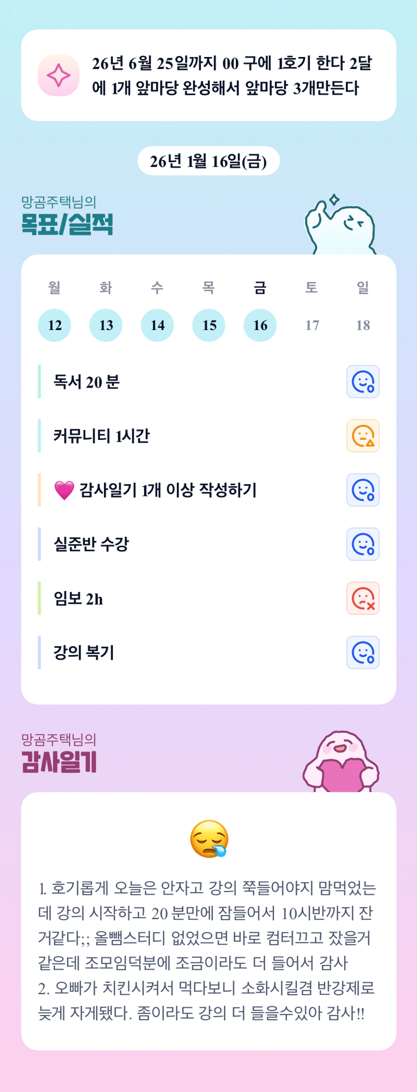 맞아요~올뺌 같이 하다보니 더 공부하게 되는 거 같아요. 오늘도 수고하셨습니다