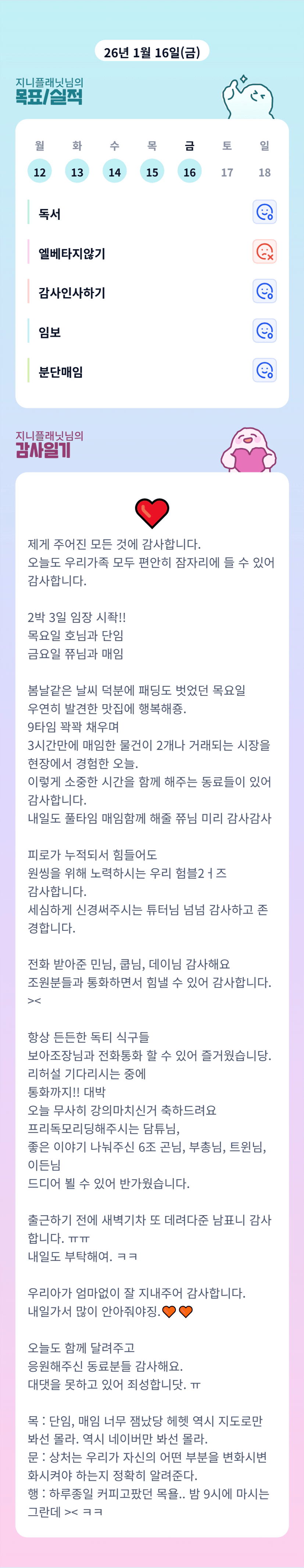 감사합니다🩷🩷🩷 많이 배웁니당 내일은 제가 더 힘내보겠숩니다 ㅎ