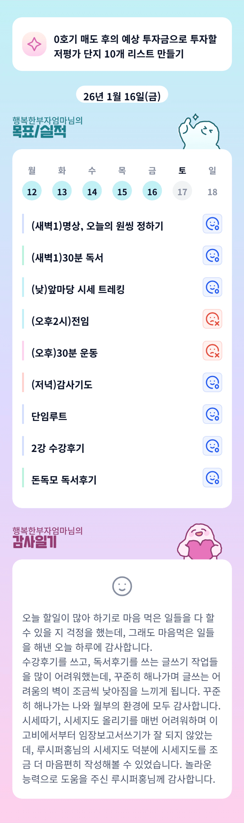 꾸준히 루틴 챙기시는 행부맘님 멋지십니다!! 루시퍼홍님 덕분에 저도 시세 따는 게 수월해졌어요~ 그저 빛!!