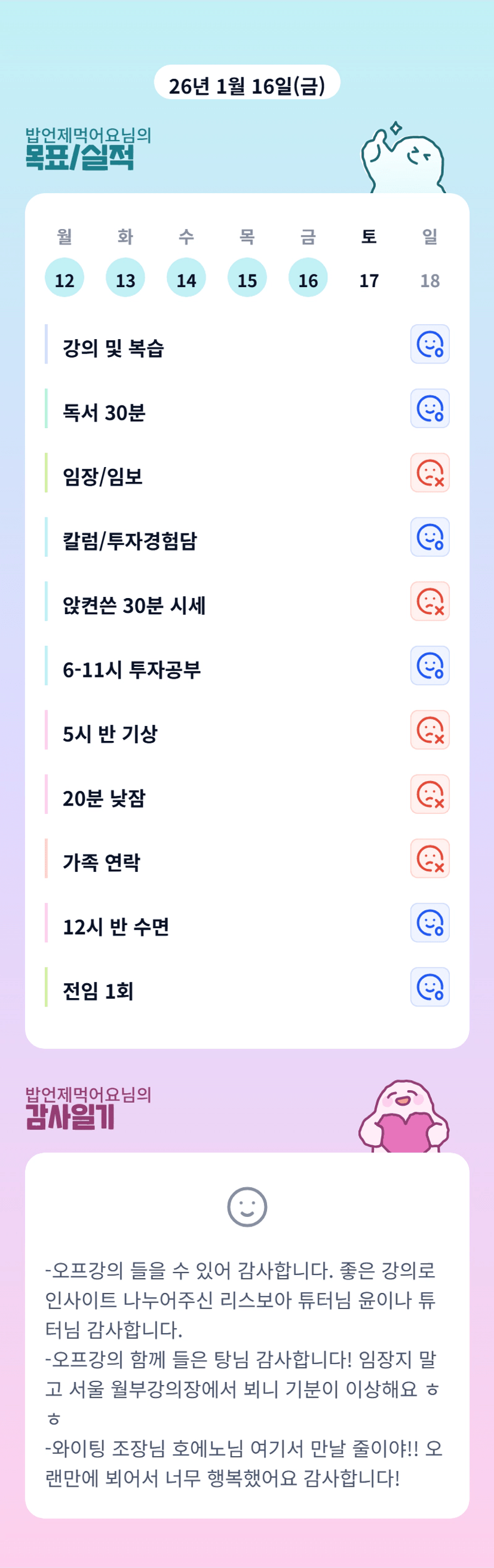 밥님 저도 함께 오프강의 들을 수 있어서 반가웠어요. 매임 화이팅입니다!