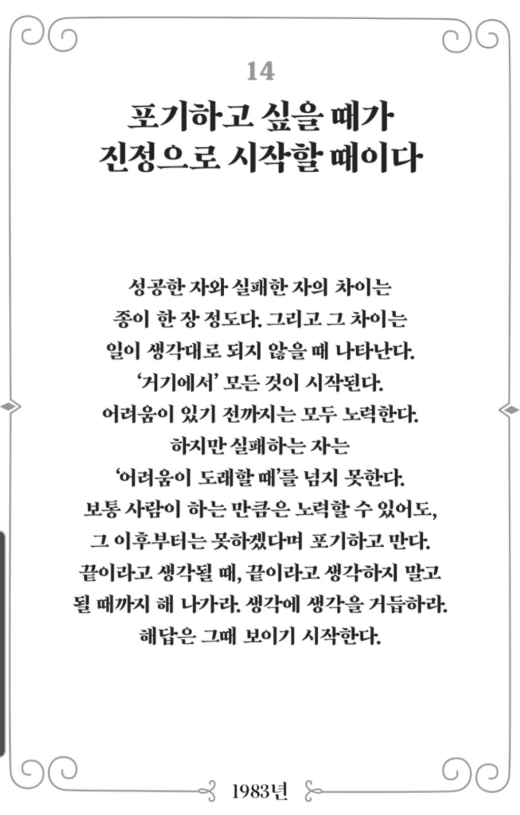 성공한 사람과 실패한 사람의 차이는 특별한 재능이 아니라 성공을 이루고자 하는 집요함이다.
