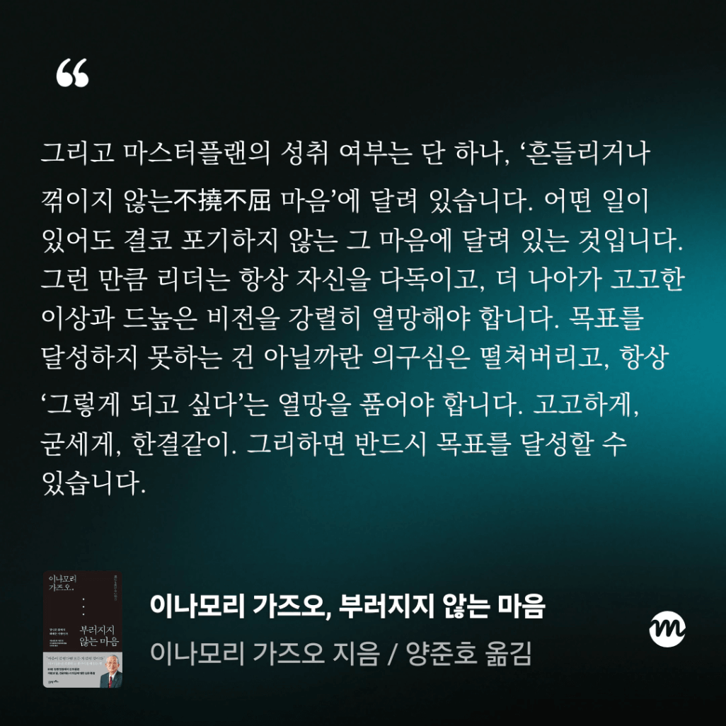 책 제목(책 제목 + 저자) : 이나모리 가즈오 ‘부러지지 않는 마음’