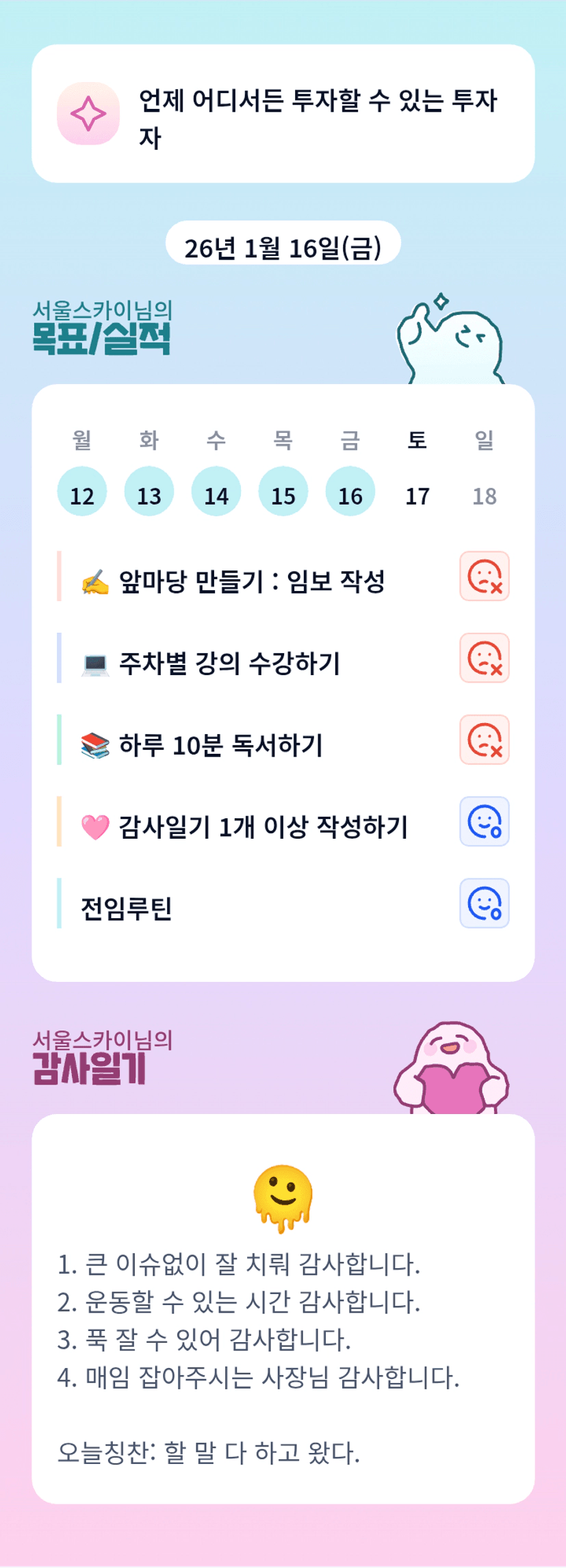 [서울스카이] 스카이님이 어떤 사람인지 생각해보세요(양파링 멘토님♡과 함께한 투자코칭 후기)