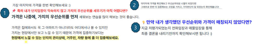 개별 단지별 우선순위와 선호도를 명확하게 파악하는 것이다. 이것이 비교평가의 기본이다.