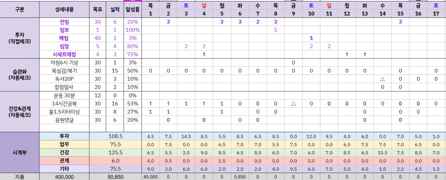 목표치를 채우기 위해, 환경을 세팅한 점 ( 아예 퇴근 후 전임 또는 임보를 바로 쓸 수 있도록 집에 안가고 카페로!)