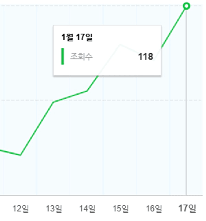 12일 블로그 글 1개, 13일 1개, 14일 1개, 15일 2개, 16일 4개 꾸준히 작성 했더니