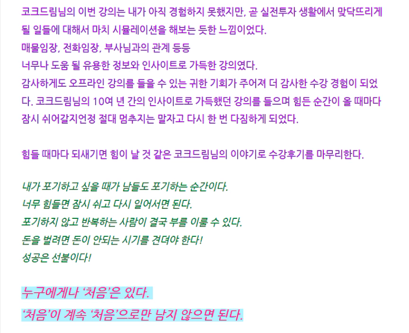 우와 진짜 정성스런 후기... ㅎㅎ 오렌지님 후기 보면서 저도 느끼는 바가 많네요! 항상 성장을 위해 지금 할 수 있는 것을 하고 계시는 오렌지님을 보며 너무 존경스럽고 대단하다고 느끼는 거 같아요! 선한 영향력으로 조원들에게 좋은 에너지까지 주셔서 너무너무 감사합니다!