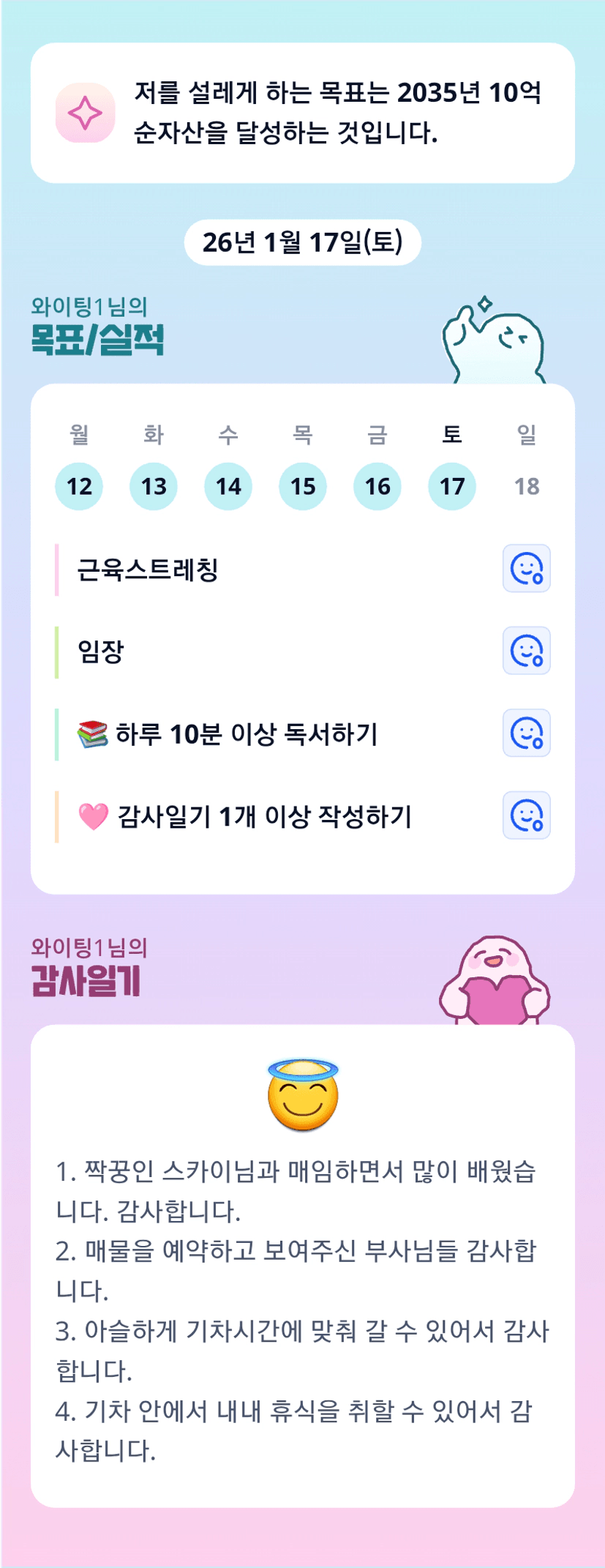 팅님 기차에서 휴식 취하셨다니 다행이네요 ~~ 부사님들 만나서 대화하고 매물 정리하느라 엄청 피곤하셨을텐데 증말증말 고생 많으셨습니다 ㅎㅎ 스카이님과 함께 하셔서 더 뜻깊은 시간이셨겠어요~~ 충분히 휴식 취하시고 담날 다시 달려봅시다 !! 화이팅 !