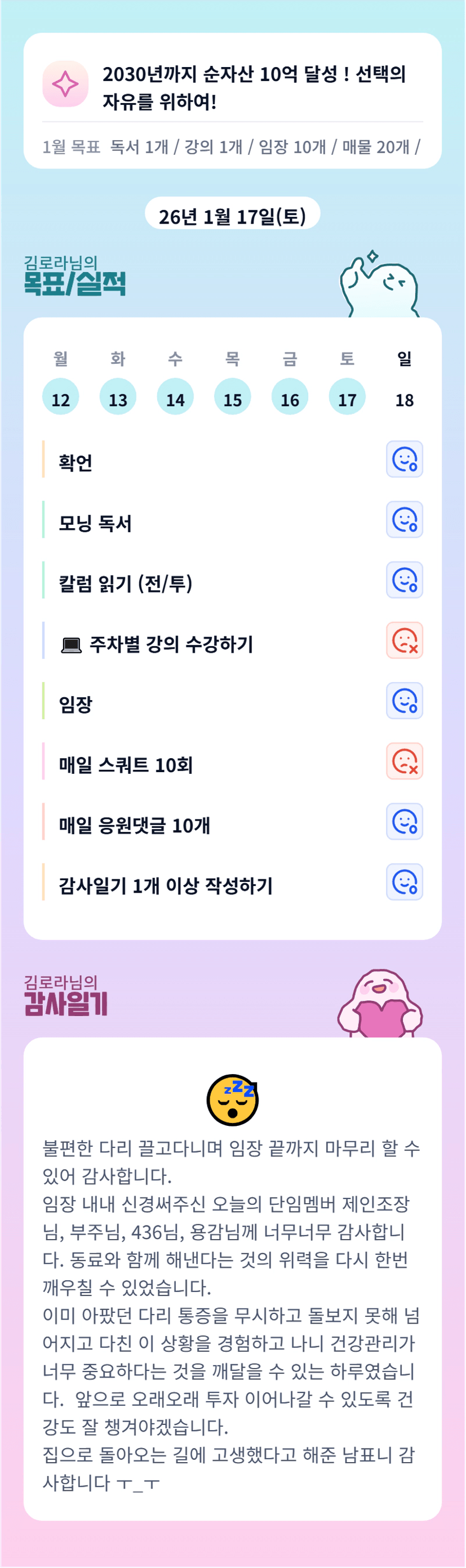로라님~ 지방 임장으로 고생 너무 많으셔요. 항상 조심하시고, 무탈하게 마무리하시길 바랍니다. 건강이 우선입니다. 화이팅입니다~