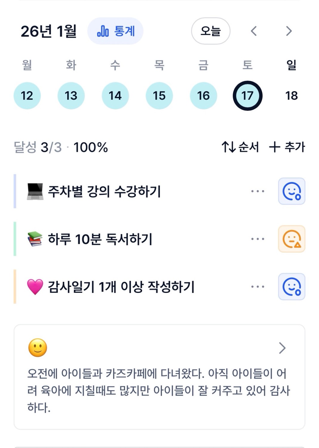 사실 계획적으로 철저하게는 못하고 있습니다. 그래도 그날그날 하루 자기전에 오늘 감사했던 일 하나씩 생각해보는건 정신건강에 매우 좋은 것 같아요!