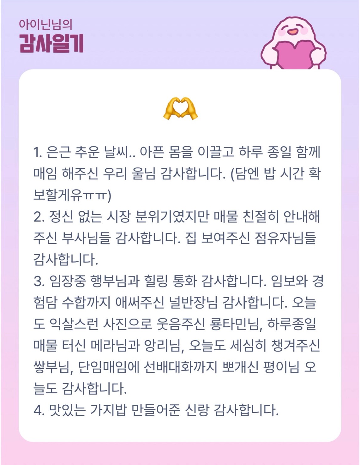사임 제출 날 울던 내가 학교 첫번째 임보를 발표하며 [아이닌]