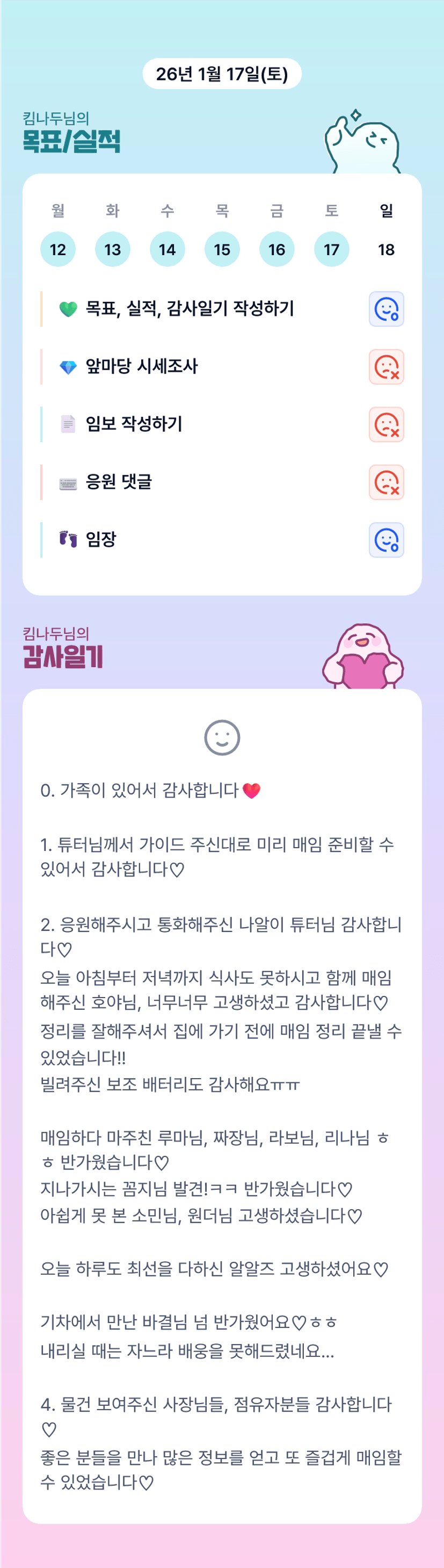 조장님 매임할 때 마주치지 못했지만 ㅠ 고생 많으셨습니다 !