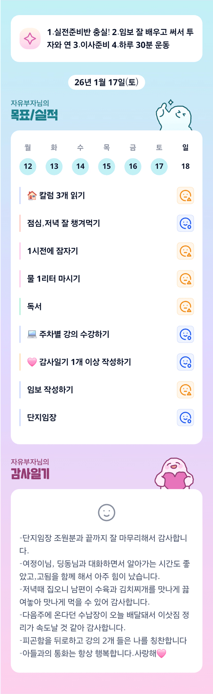 우리 자유부자님^^ 감사한 일 가득이네요~ 항상 응원합니당!! 오늘도 파이팅!!!!