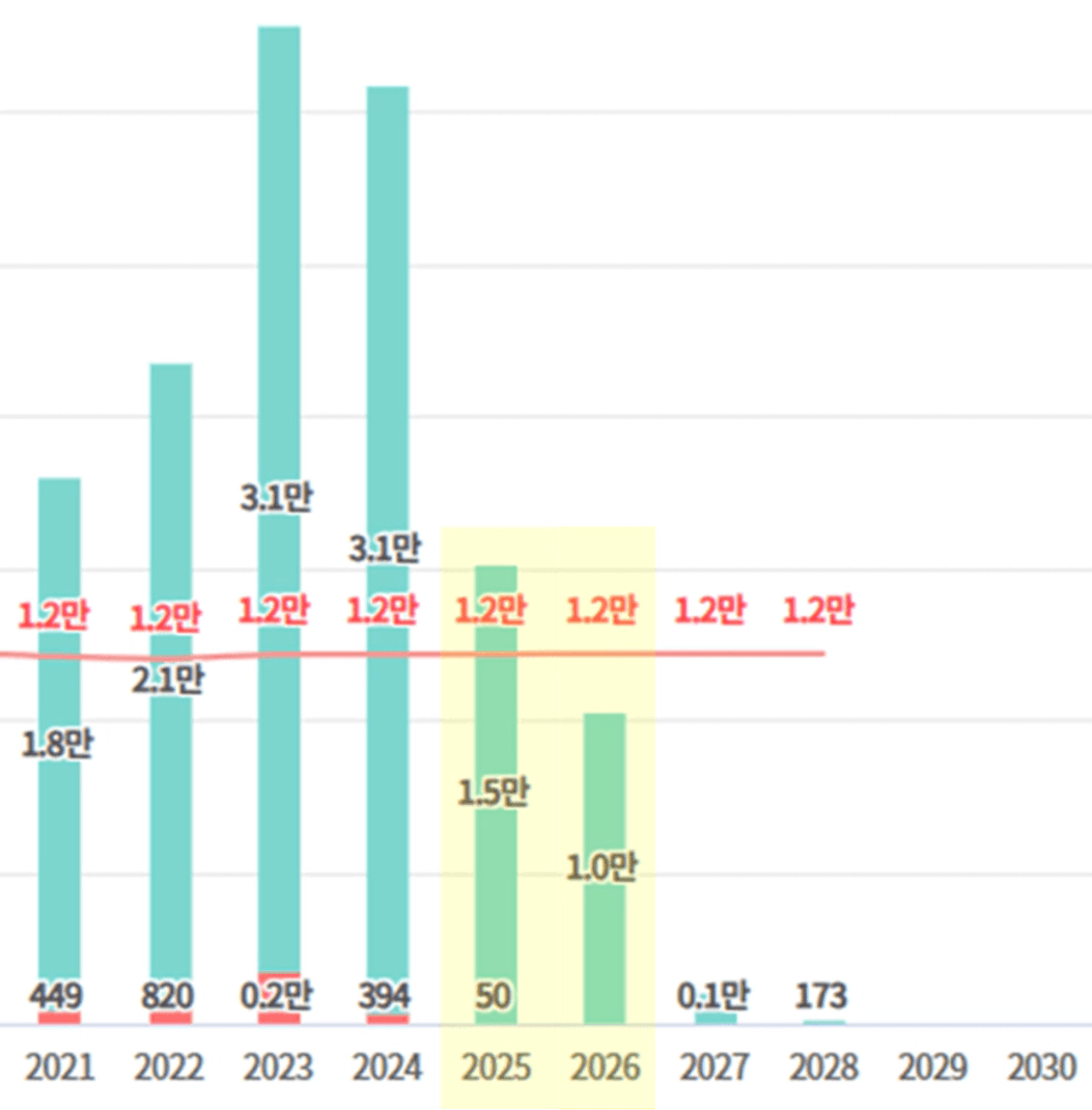 그렇다면 최근 25년부터 공급이 감소하고 있는