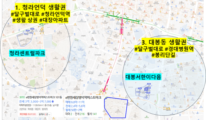 대구 중구에서 가장 선호하는 청라언덕 생활권에 있습니다.