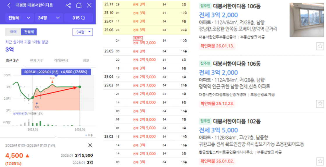 e편한세상명덕역퍼스트마크 전세 매물이 3.3~3.4억에 쌓여있어