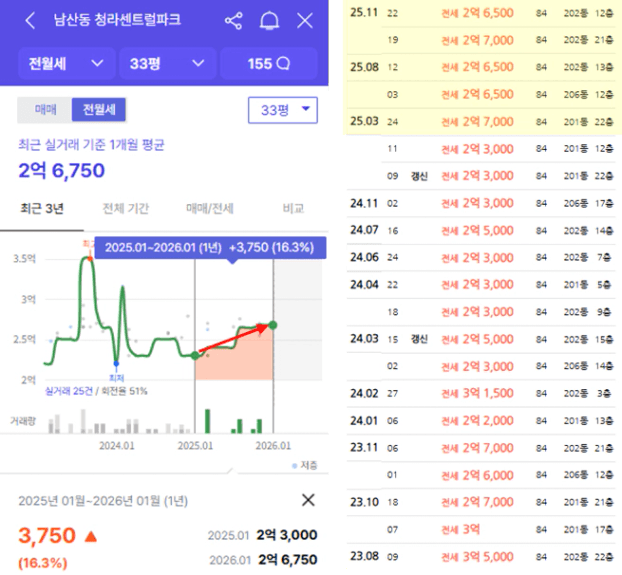 '25.1월 대비 16.3% 상승, 3,750만원 상승했습니다.