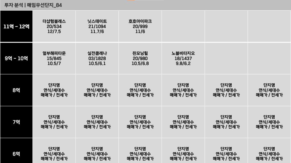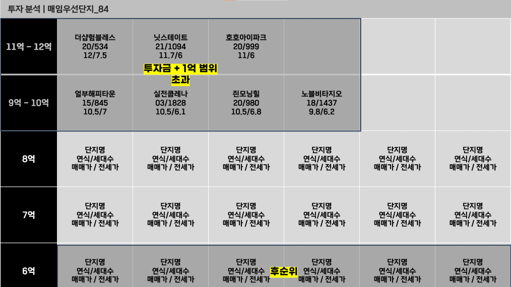 투자금 내에서 후순위 단지들을 먼저 제외한 나머지를