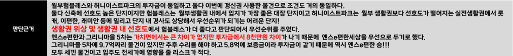 만약 큰 차이가 없다면, 더 싼 매물을 결론까지 가져가시면 됩니다!!