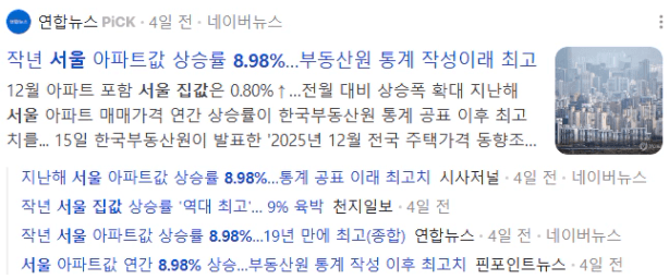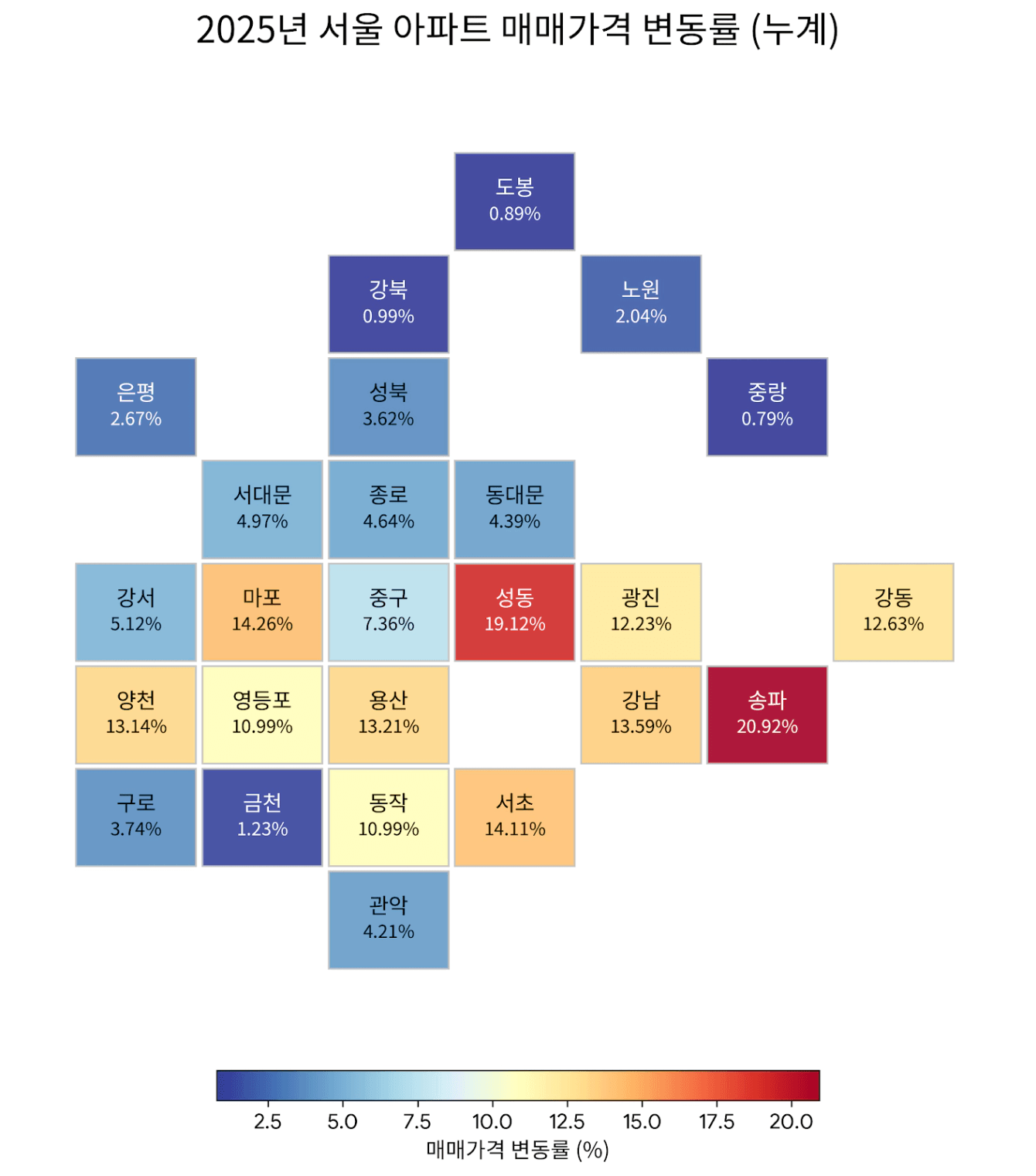 2025년 서울 아파트 가격이 전년 대비 8.98% 올랐습니다.