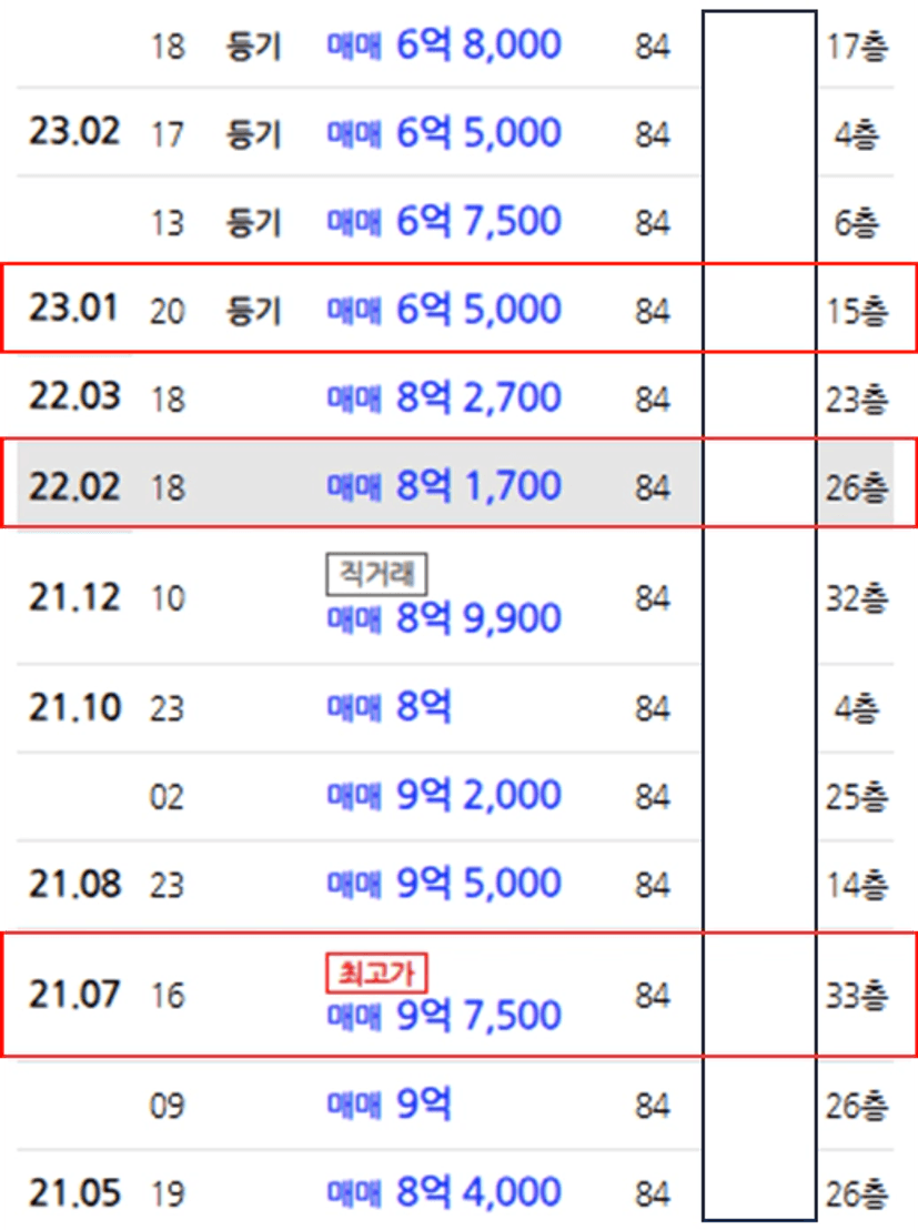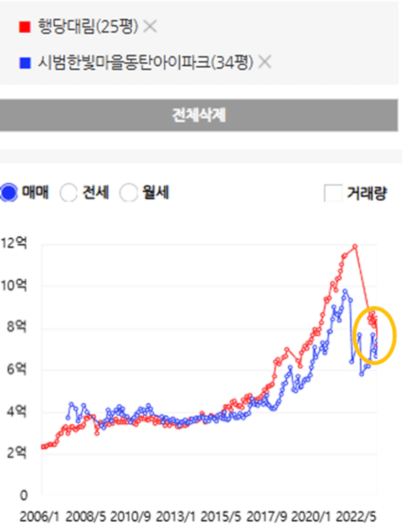 22년~23년초 전국적으로 하락장이었던 시기