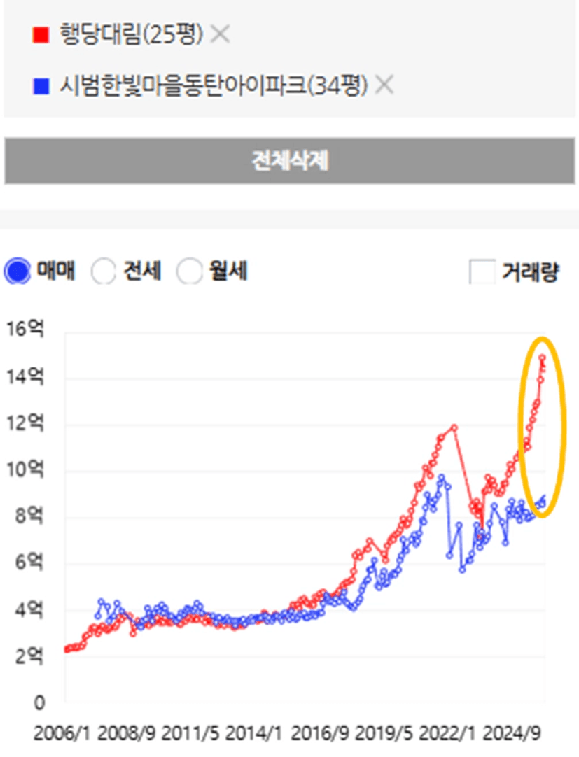 23년초에 두 단지의 가격은
