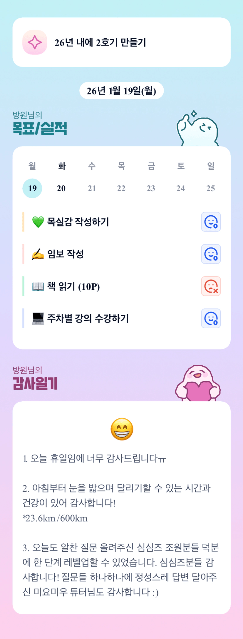 할 수 있을까 의심하는 자신에 대한 마음가짐을 확신으로 바꾸고 싶다.[방원]