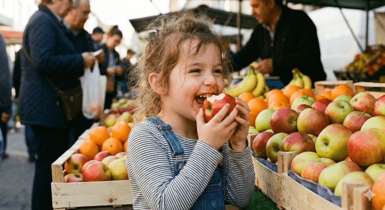 다른 쪽은 당장 과일가게로 가서 사과를 사 먹는다.