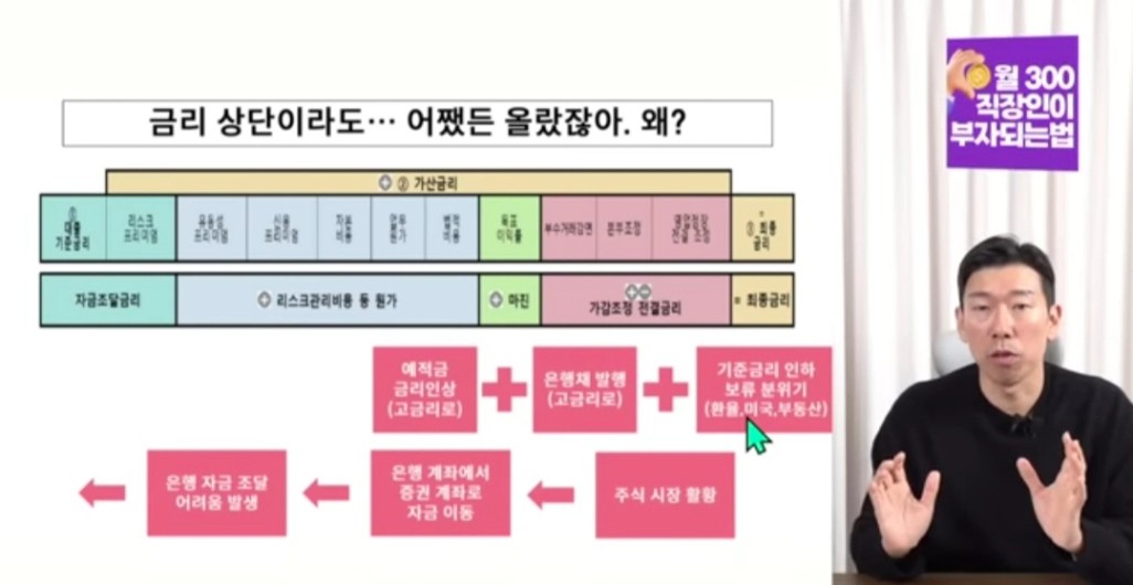 -현재상황: 주식시장이 최근 4천을 뚫었고 전세계의 주식시장이 활황이기 때문에 은행계좌에서 증권계좌로 자금 이동->은행이 대출할 돈이 없어 자금조달의 어려움이 있다.