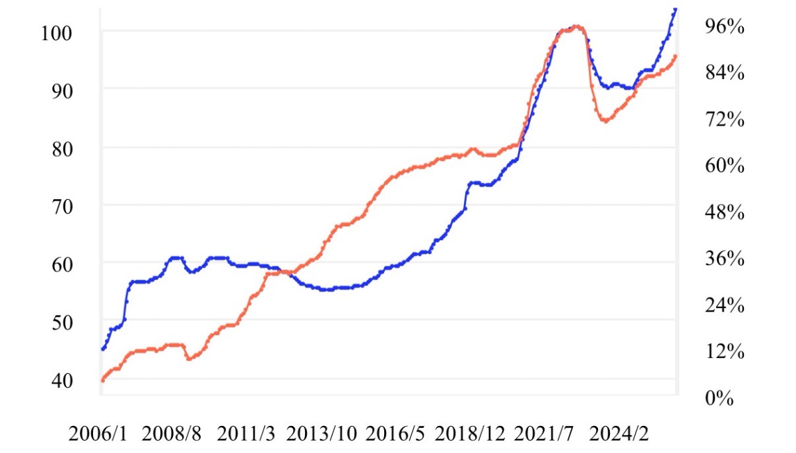 최근 서울 전세지수는 23년 7월을 기점으로
