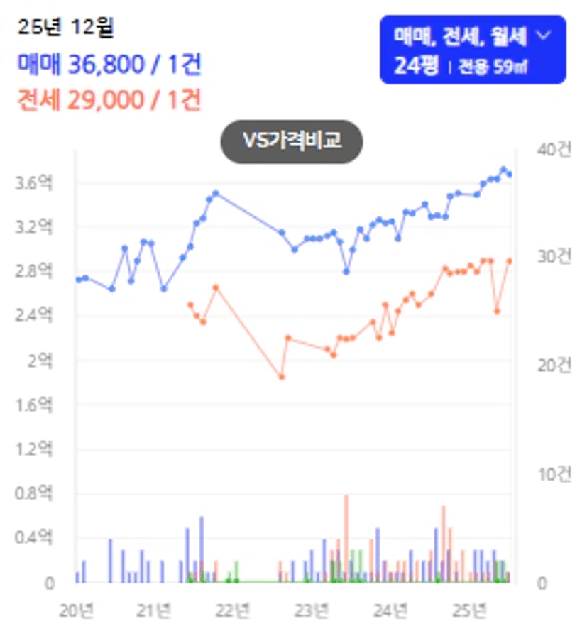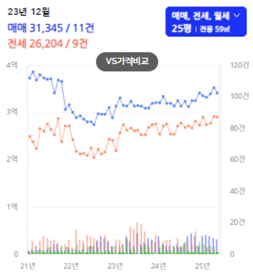 신축의 입주가 많아짐으로써 갈아타기 하는 세입자들로 인해 기존 30평대 전세가격도 떨어지는 경우는 물론이고, 자연스레 20평대의 전세가격이 버티기 힘들 수 있기 때문입니다.