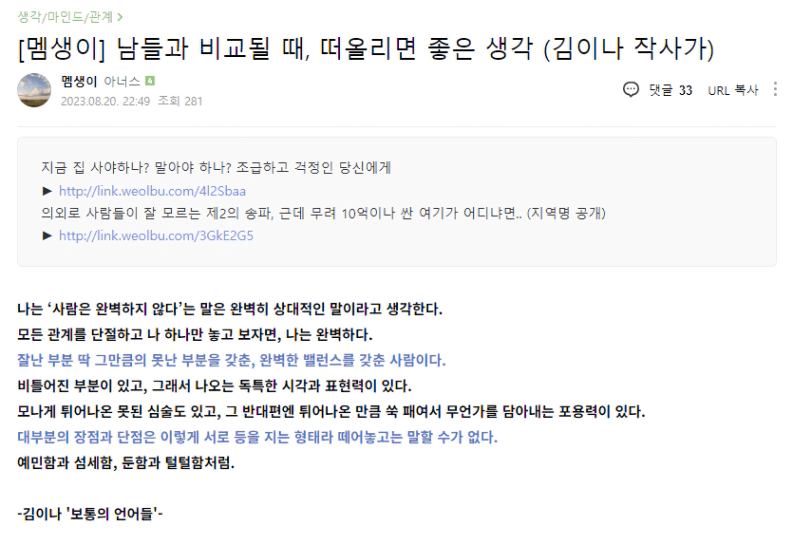 이번에 다시 읽었고 역시나 너무나도 좋았다. 근데 또 신기한건 이번에 뽑은 문장으로 내가 쓴 글도 있었다는 걸 찾아냈다는 것.
