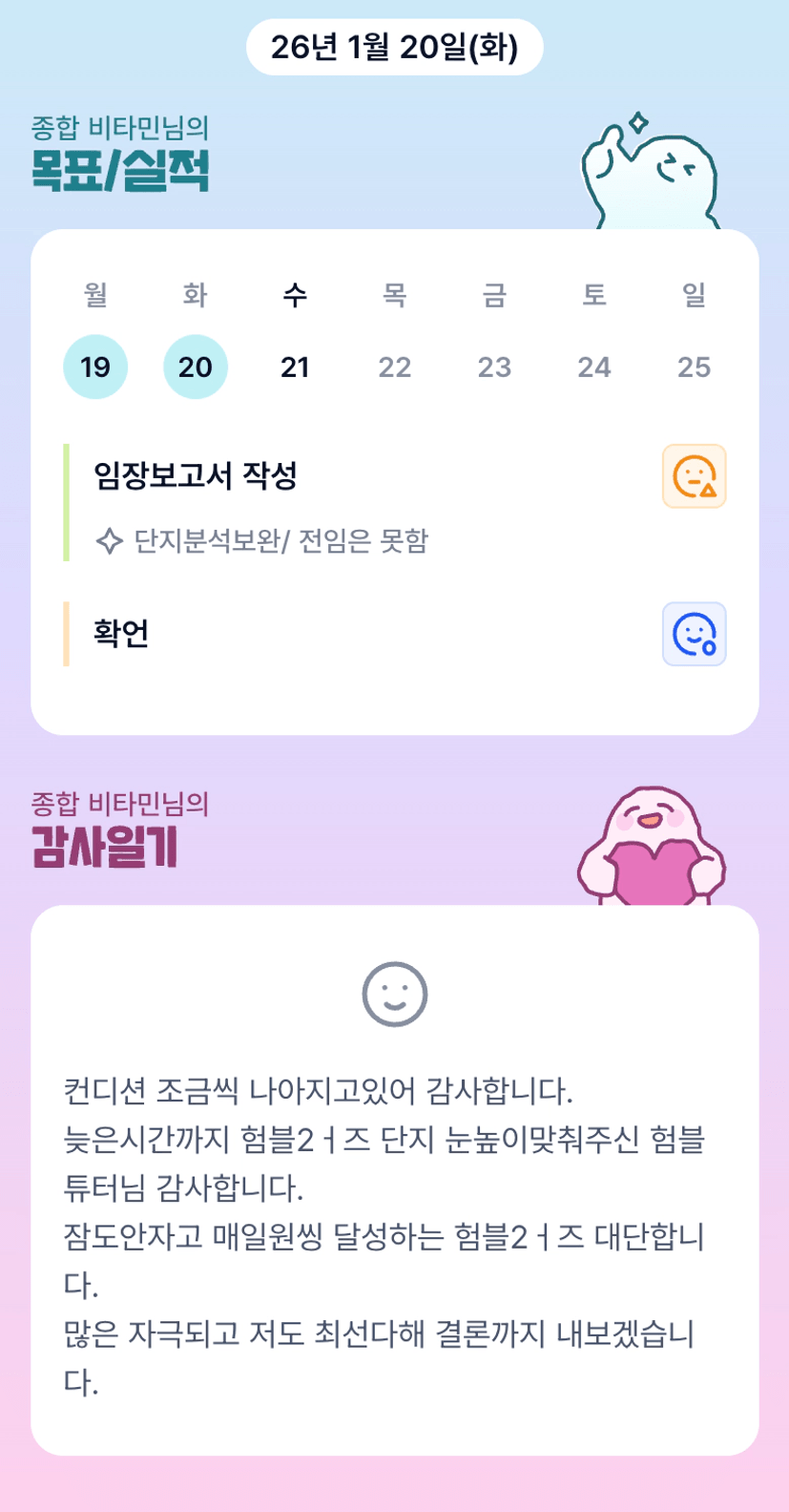 민님 컨디션 회복중이라 다행입니다 오늘두 힘내세요
