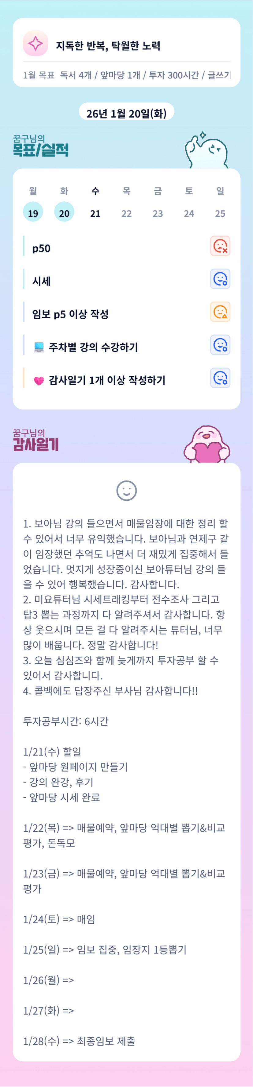 오호~ 감일에 일주일 계획 써나가는 것도 너무 좋네요! BMBM!!