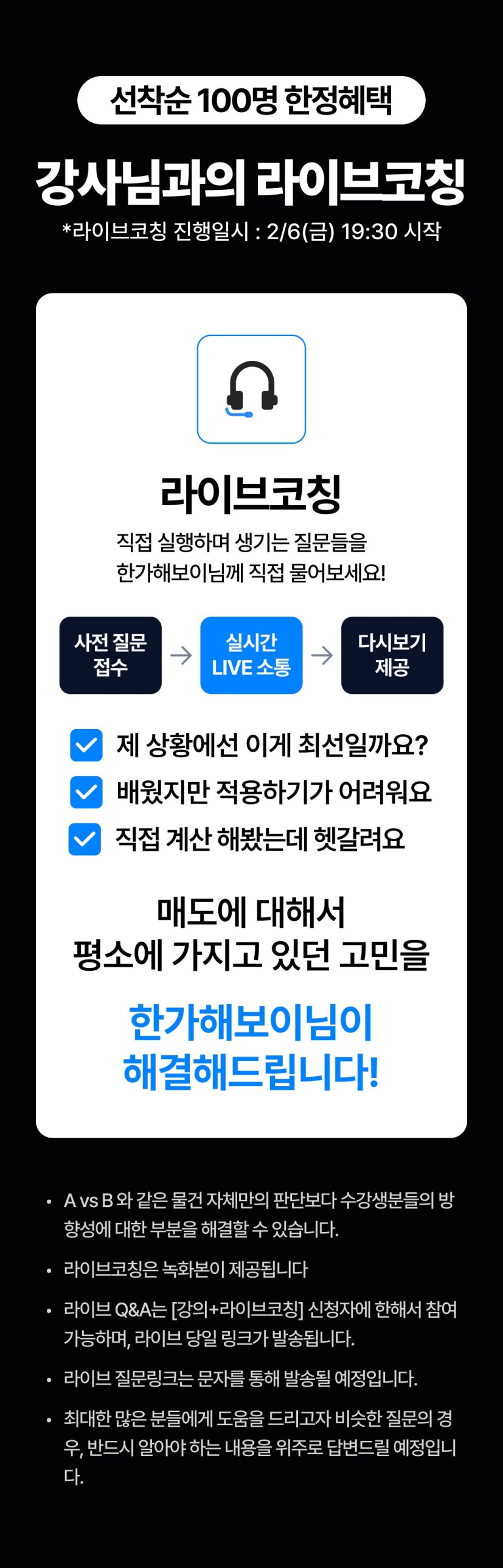[본공지] 월부 첫 매도 특강 - 한가해보이의 "바로 따라할 수 있는 매도 잘하는 방법" <1/21(수) 오전 11시 선착순 OPEN!>