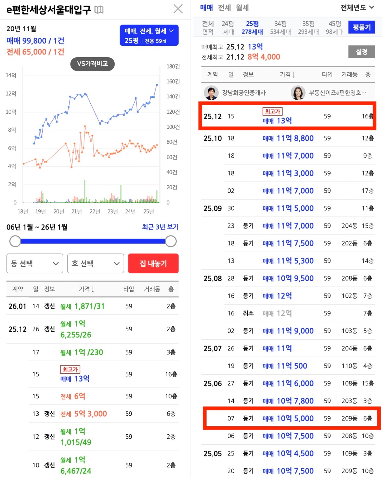 메인▶︎매매 13억, 전세 6억대