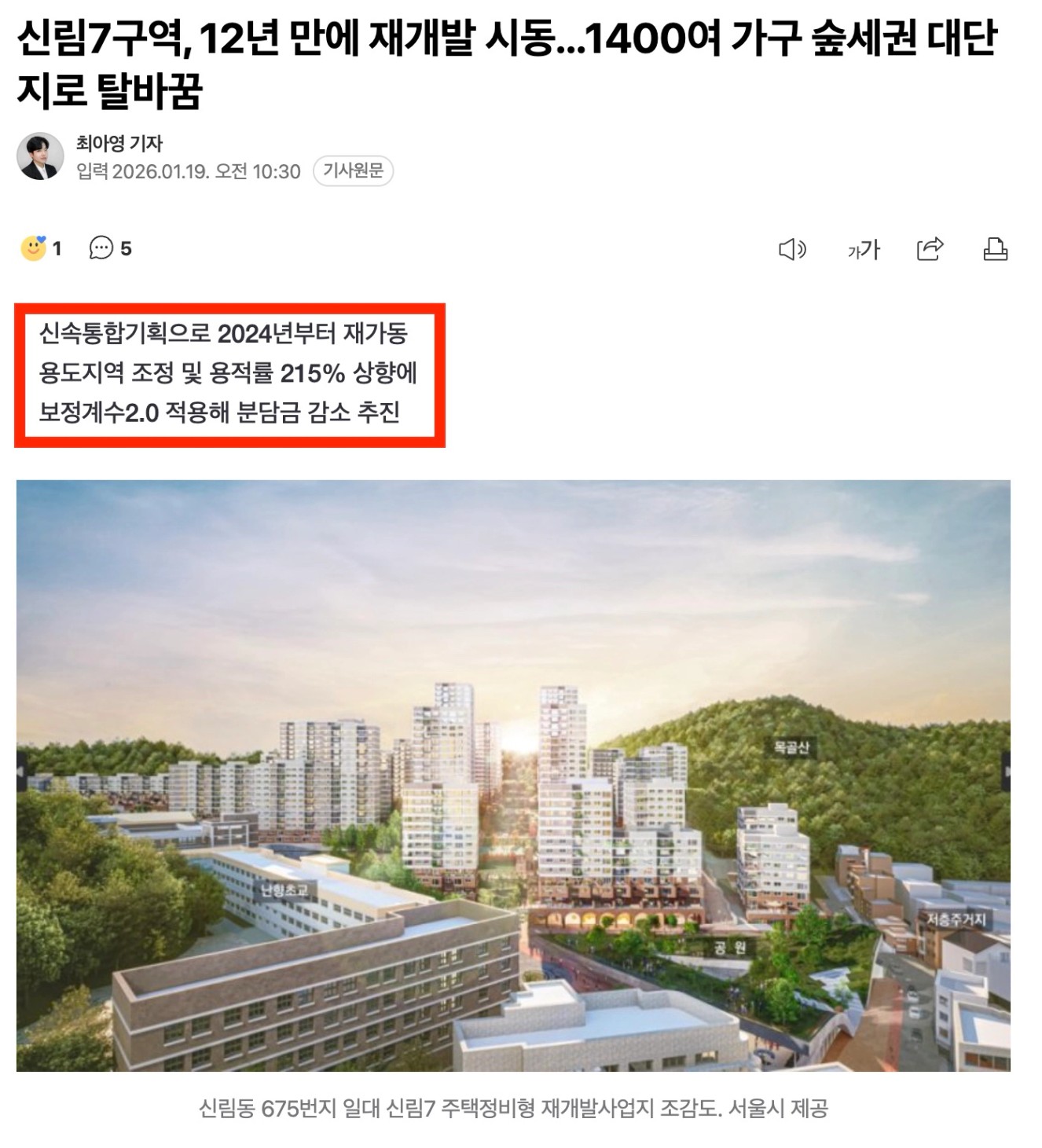 먼저 오늘자 기사인데요. 신림7구역이 신통기획으로 10여년만에 재개발을 다시 추진한다는 소식이었어요. 사실 여기는2024년에 정비구역까지 지정되었는데 10.15 대책 이후에 조합원 지위양도 제한이랑 이주비 대출규제까지 걸리면서 주민들 불안이 커져서 최근 조합 설립 동의율도 70% 선에서 멈춰있다고들 말씀들이 있더라구요..! 사실 난곡선이 들어온다고도 하지만 위치가 사실 아쉬운 곳이긴 해요.