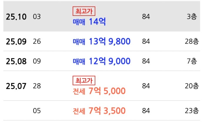 메인▶︎매매 14~18억대, 전세 7~9억대