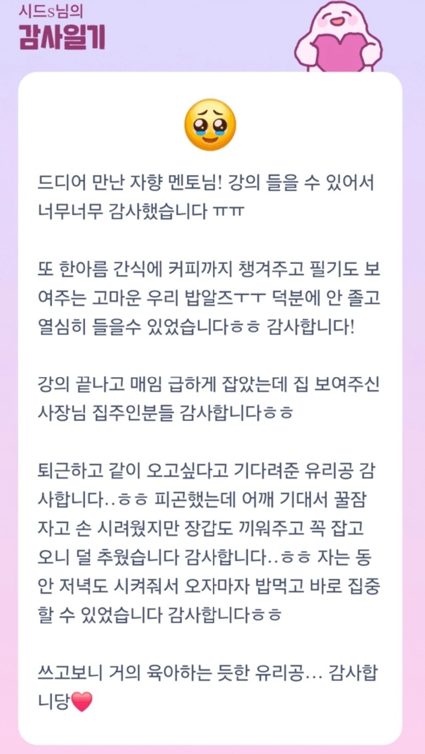 덕분에 요즘 저의 감사 일기는