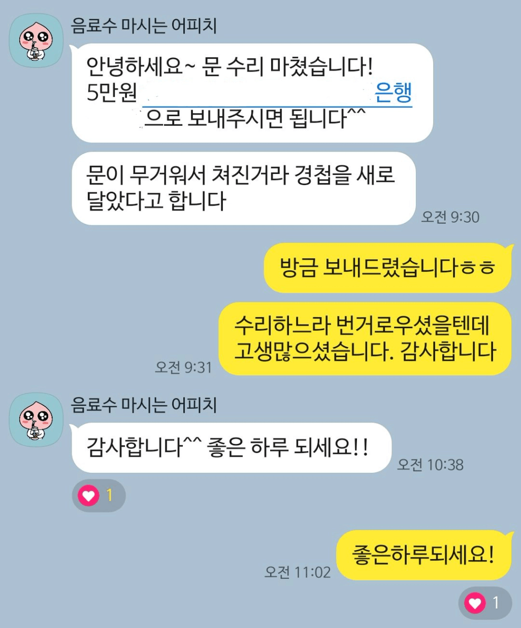 감사하게도 세입자님은 제 요청에 흔쾌히 응해주셨습니다.